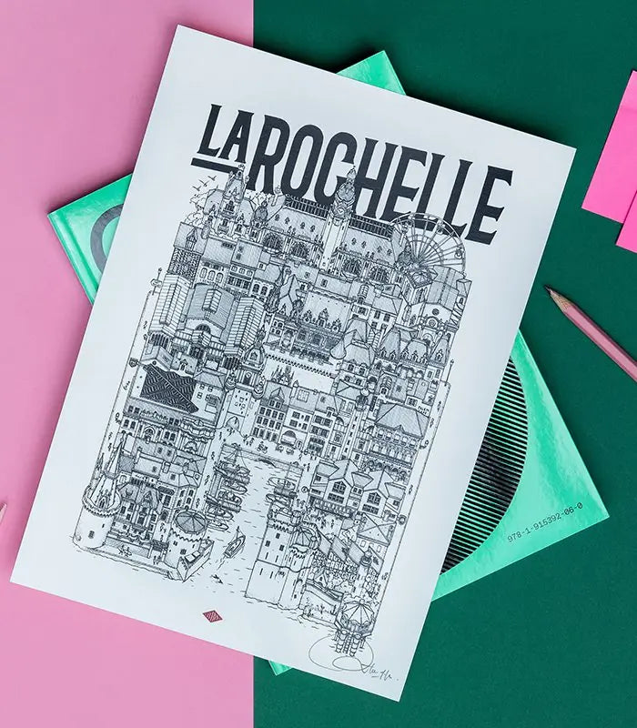Avec l'Affiche La Rochelle A4 Docteur Paper, découvrez la ville dans une affiche en noir et blanc très détaillée. L’artiste rend hommage à l'architecture typique de la ville tout en célébrant les structures aux lignes plus modernes, sans oublier ces petits détails qui font le charme de La Rochelle . C'est pourquoi chaque finition est minutieusement travaillée à la loupe. Fasciné par son patrimoine architectural et culturel, Docteur Paper illustre les incontournables de la ville sous un regard graphique. Cette affiche de La Rochelle est signée par l’artiste avant l’envoi et imprimée sur du papier d’art.