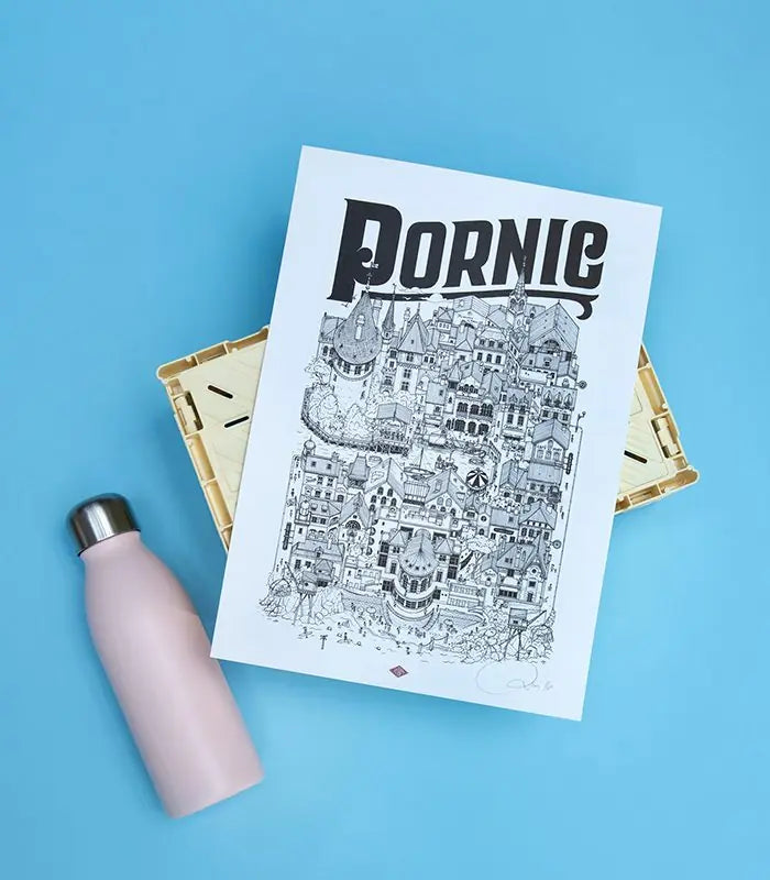 Avec l'Affiche Pornic A4 Docteur Paper, découvrez la ville dans une affiche en noir et blanc très détaillée. L’artiste rend hommage à l'architecture typique de la ville tout en célébrant les structures aux lignes plus modernes, sans oublier ces petits détails qui font le charme de Pornic. C'est pourquoi chaque finition est minutieusement travaillée à la loupe. Fasciné par son patrimoine architectural et culturel, Docteur Paper illustre les incontournables de la ville sous un regard graphique. Cette affiche de Pornic est signée par l’artiste avant l’envoi et imprimée sur du papier d’art.