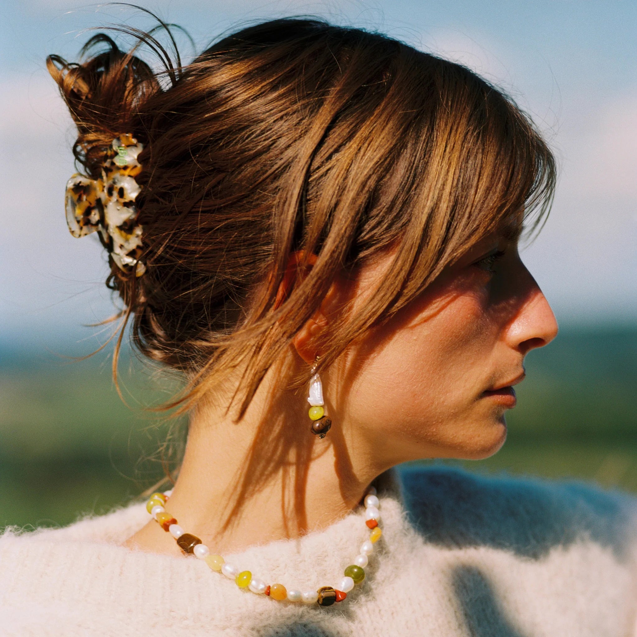 - Les perles d’eau douce et le bambou de mer apportent une touche organique et respectueuse de l’environnement, tout en offrant des pièces singulières et poétiques. Chaque pierre étant unique, chaque bijou raconte une histoire différente.