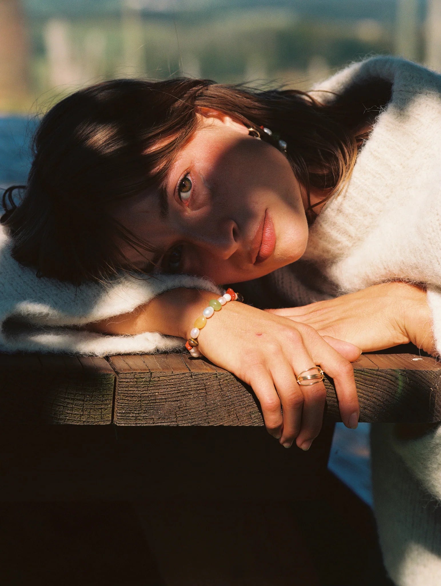Chaque pierre est unique, leur couleur et leur aspérité peuvent légèrement différer de la photo: nuances, veines, légères aspérités… autant de détails qui rendent votre bijou totalement singulier. Une pièce vivante, solaire, qui s’accorde aussi bien à un look minimaliste qu’à un style plus affirmé.