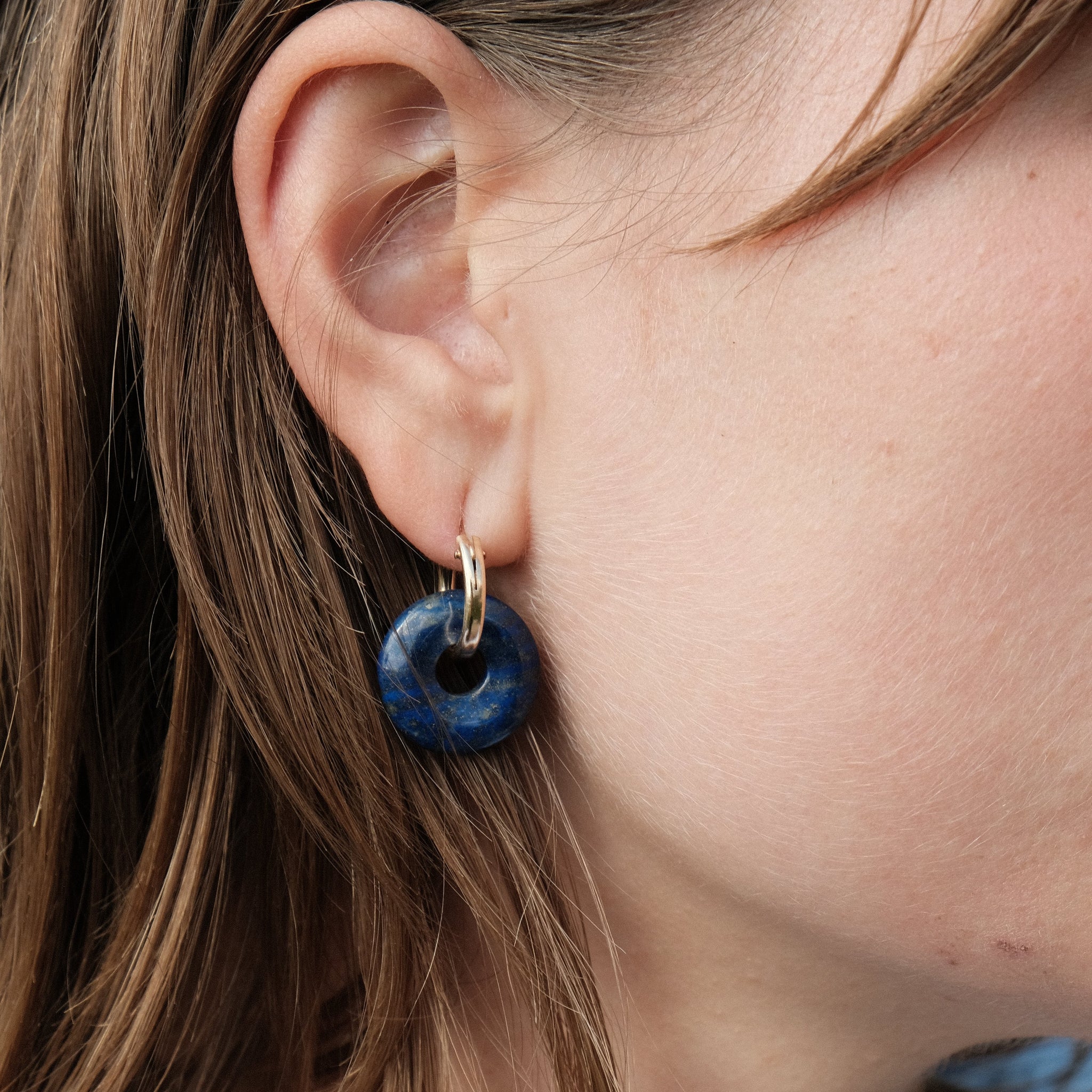 - Créoles de diamètre 13mm et lapis lazuli de diamètre 20mm