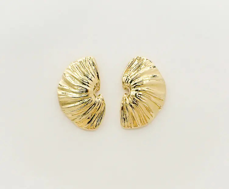 Les Boucles Pégase Chic Alors évoquent d’un coquillage précieux ou d’un fragment minéral façonné par le temps, les boucles Pégase déploient un volume plissé à la fois graphique et organique.