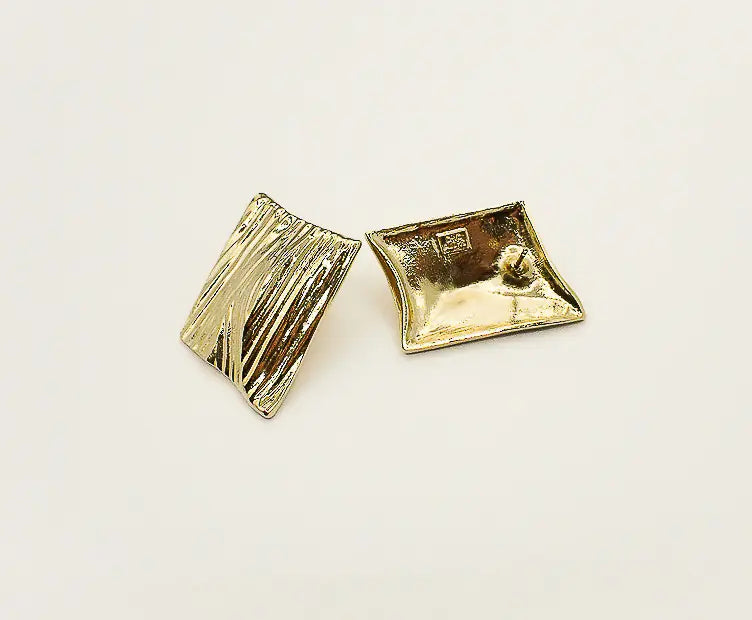 Les Boucles Pétra Chic Alors évoquent un fragment de métal taillé comme une gemme brute. Leur surface striée, rythmée par des facettes irrégulières, capte la lumière et crée un éclat vibrant, presque minéral.