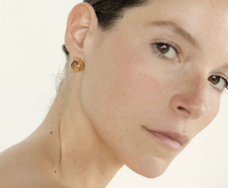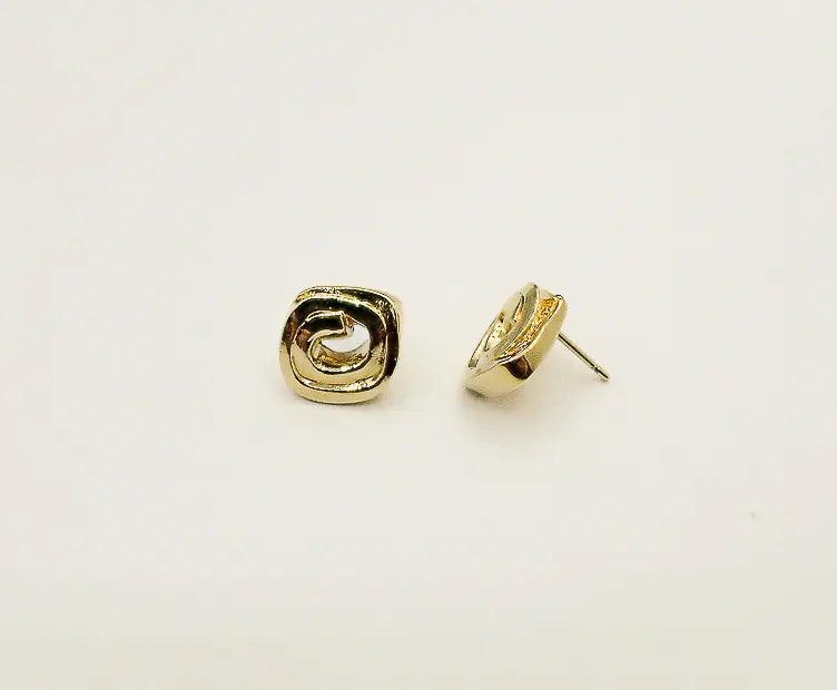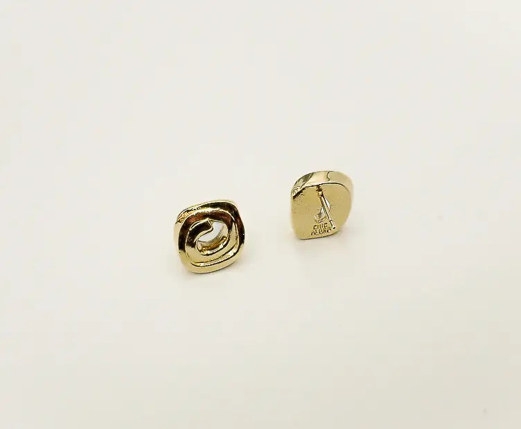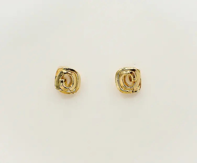 Les Boucles Rosie Chic Alors sont de petites boucles d’oreilles puce dorées, formées d’un fil de métal sculpté en spirale, comme enroulé sur lui-même.