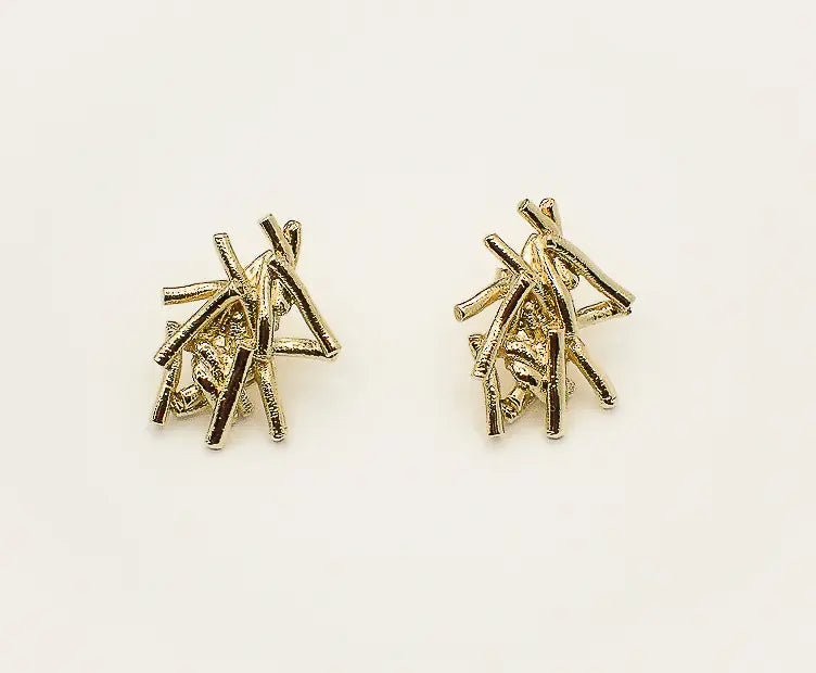 Les Boucles Stella Chic Alors sont composées de fragments de métal sculptés, comme des éclats disposés en étoile. Leur forme libre, presque explosive, joue sur les lignes croisées et les reflets, créant un relief vivant et irrégulier.