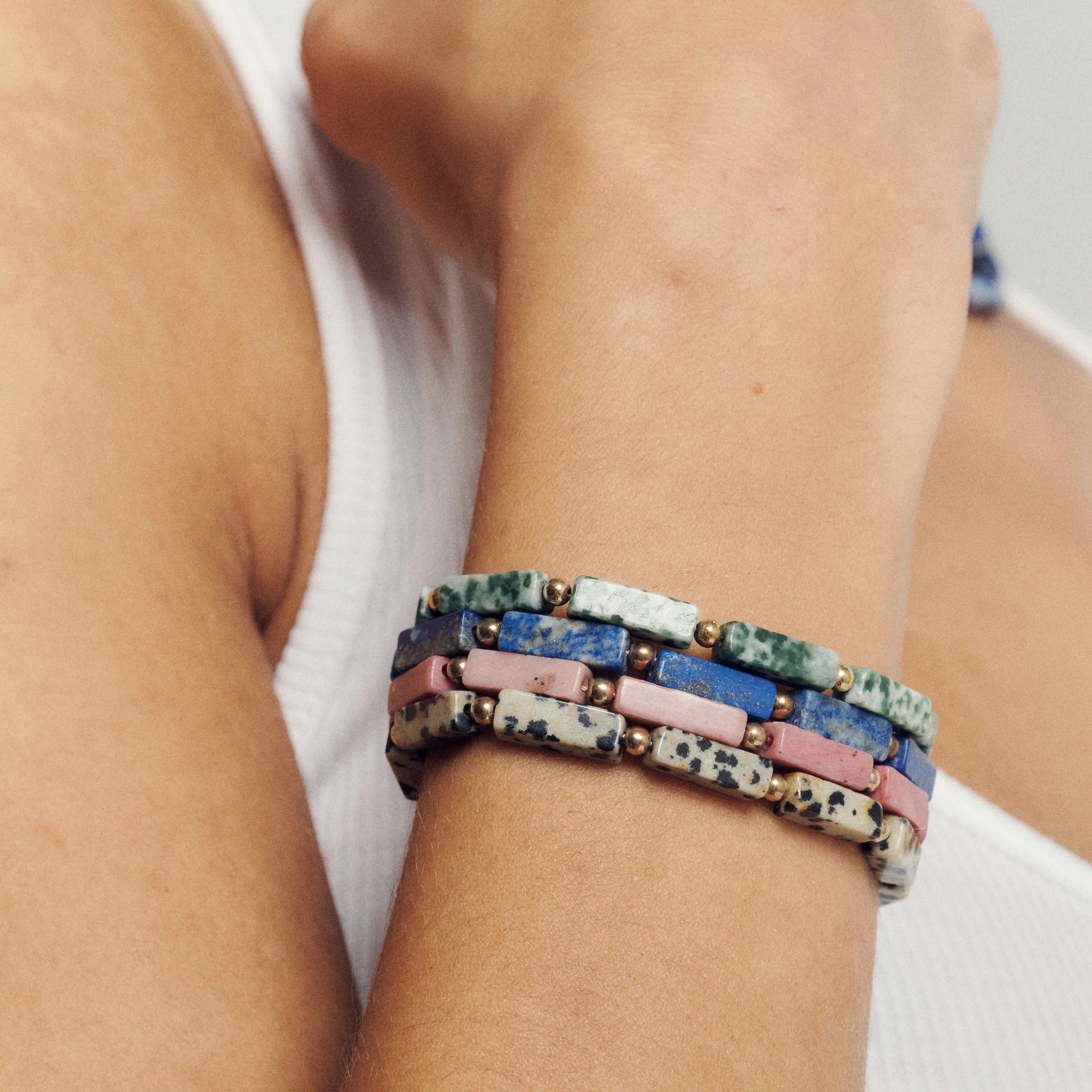 Le mot de la team CQFD : On a un vrai coup de cœur pour ce motif ! Le Jaspe Dalmatien est la pierre parfaite pour celles qui veulent sortir des sentiers battus tout en restant élégantes. Le contraste entre le noir et le crème, relevé par l'éclat de l'or, fonctionne à merveille. C'est un bijou qui a "du chien", facile à porter seul ou en accumulation avec d'autres bracelets en pierres naturelles pour un look bohème-chic assumé.