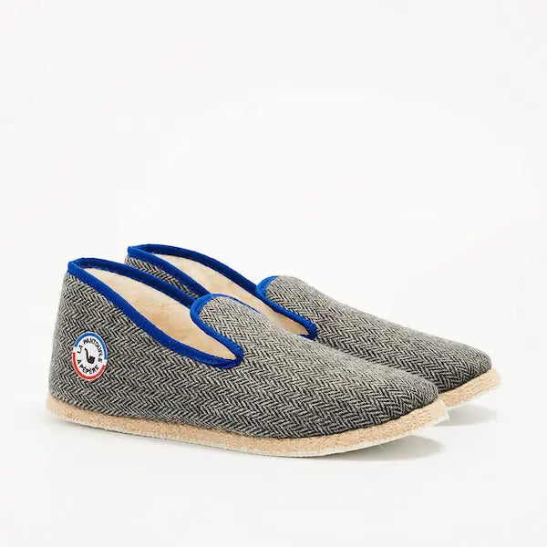 Les chaussons charentaises Pépère William de La Pantoufle à Pépère sont confectionnées avec amour selon la technique du cousu-retourné, emblématique de la charentaise traditionnelle. Chaque paire est minutieusement façonnée à la main, ce qui garanti une qualité et un confort inégalé. Cette saison, adoptez la tendance incontournable du chevron ! Mais pourquoi se contenter d'un motif sage ? Avec la Charentaise Pépère William, le chic se pare d'une touche d'audace avec un liseré bleu pétant, pour un style qui ne passera pas inaperçu.