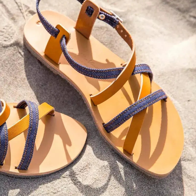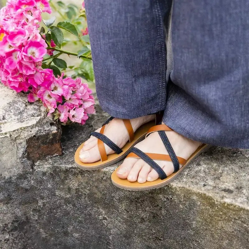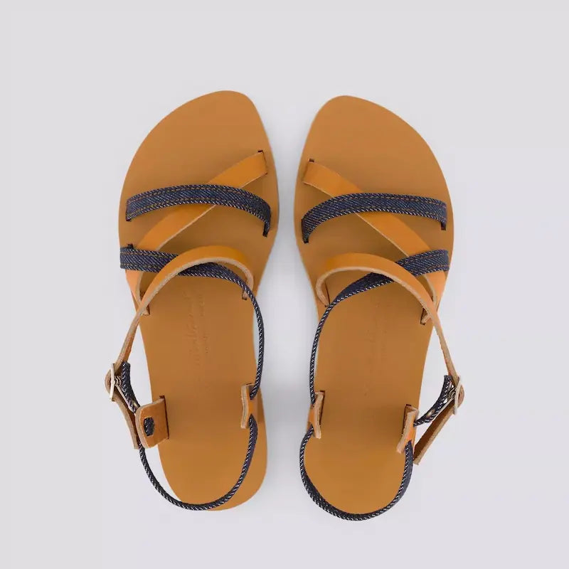 Découvrez les sandales 924 coton bio cuir camel de 1083, une pièce basique et indispensable du vestiaire féminin. Le savoir-faire 1083 s'associe au sandalier Max Vincent pour créer une collection de sandales à l'image des deux marques. Avec sa jolie couleur camel, ce modèle est un classique que vous pourrez garder été après été ! Elles sont dessinées + coupées + piquées + montées en France. Issues d'un cercle vertueux de recyclage,  la touche 1083 est apportée dans les passants en jeans faits à partir de chutes de SuperDenim.