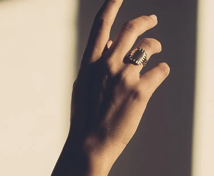 La Bague André CHIC ALORS est une bague ajustable en métal doré et gravé, de forme carrée. En effet, la bague André est fabriquée de façon artisanale, en laiton doré à l'or fin 24 carats.