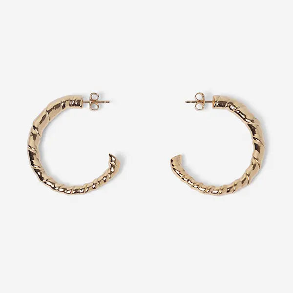 Les Boucles Athéna CHIC ALORS sont de grandes boucles créoles irrégulières en métal doré torsadé.