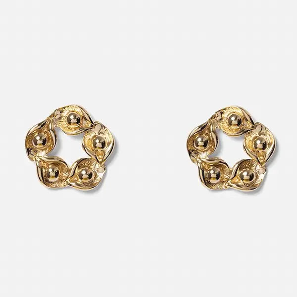 Les Boucles Dahlia CHIC ALORS sont d'élégantes boucles d'oreilles en forme de couronne de fleur dorées. On aime le style rétro-chic de ces boucles d'oreilles florales et originales.