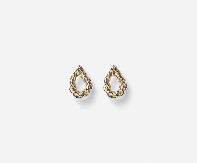 Boucles d'oreilles Iris de Chic Alors. Petites boucles d'oreilles en forme de goutte tressée. Laiton doré à l'or fin 24 carats.