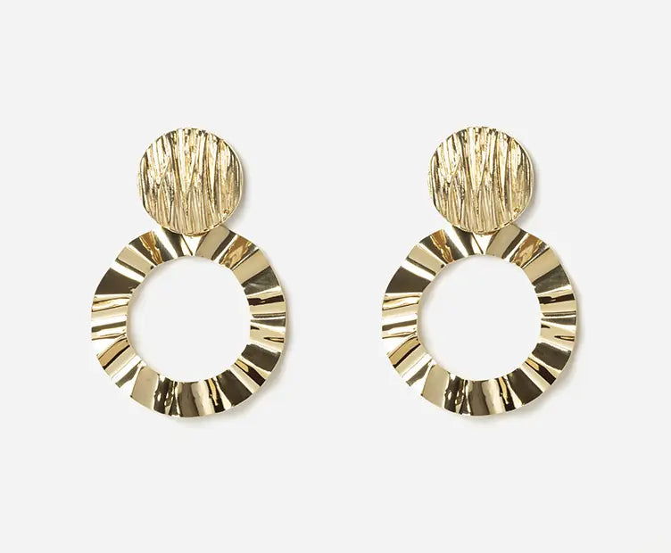 Les Boucles Gala CHIC ALORS sont d'élégantes boucles d'oreilles pendantes en métal doré composées d'un cabochon strié et d'un anneau ondulé. En effet, les boucles Gala sont fabriquées en laiton doré à l'or fin 24 carats. De plus, chaque plissage est différent selon l'humeur de la créatrice, rendant ces boucles d'oreilles uniques. C'est pourquoi on aime l'esprit couture des boucles Gala.