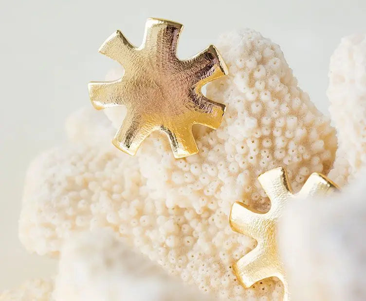 Les Boucles Solar CHIC ALORS sont d'originales boucles d'oreilles en métal doré. En effet, les boucles Solar sont fabriquées de façon artisanale, selon la technique de la fonte, en étain recyclé doré à l'or fin 24 carats. De plus, la forme de soleil stylisé sculpté à la main, apporte une esthétique à la fois brute et naïve. Conçues pour un porter confortable, ces grandes boucles soleil vous donneront une élégance unique.