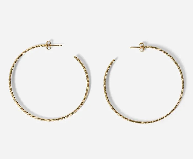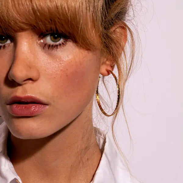 Les Créoles Esther XL CHIC ALORS sont de larges créoles dorées, chic et singulières pour toutes les occasions. On aime leur élégance et leur originalité, pour un équilibre parfait entre sobriété et caractère. Les Créoles Esther sont confectionnées avec soin au sein de l'atelier parisien CHIC ALORS. De plus, leur effet métal torsadé ajoute une touche de sophistication, tandis que leur volume en fait un choix audacieux pour compléter votre look quotidien avec style.