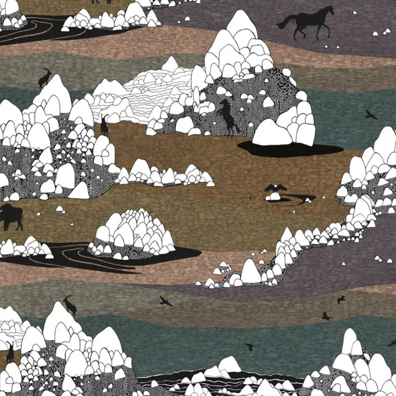 Le Papier Peint Grands Espaces RESSOURCE représente un mariage inattendu entre des canyons colorés et des concrétions inspirées de coquillages en noir et blanc. Il nous fait plonger dans un western graphique et invite à l’imagination entre coups de crayon et dégradés. Depuis l’introduction de sa première collection de papier peint, Forestine, en 2016, la maison Ressource a su marier habilement la couleur et la finesse du dessin, créant ainsi une harmonie parfaite entre peinture et motif. Plaçant la créativité au centre de son processus de fabrication, l’entreprise s’engage à offrir des décors à la fois saisissants et inspirants.