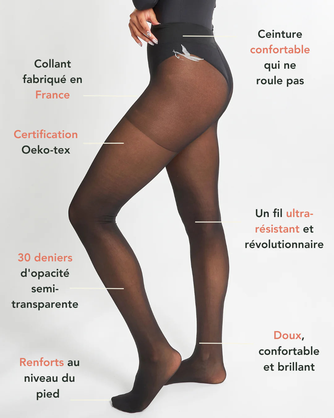 Collant 30 Deniers Révolution Cygnes | Ultra-Résistant & Chic | CQFD
