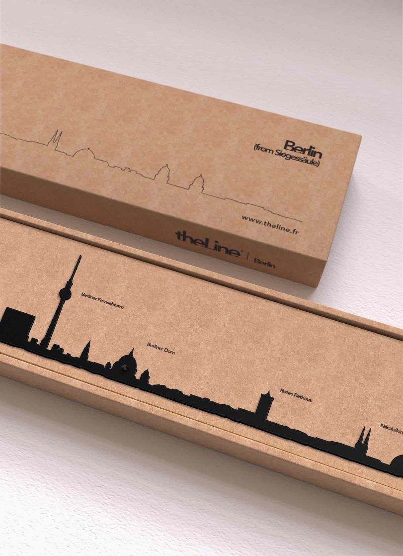On y voit entre autre le Berliner Dom, le Fernsehturm et le palais du Reichstag.L'histoireThe Line commence par une photo prise un matin de 2015 à Marseille. Il est tôt, le soleil se lève derrière la colline de Notre Dame de la Garde et découpe sa silhouette en ombre chinoise. L'essentiel de Marseille est là ; la colline, la Bonne Mère, la Trouée de Vauban.Antoine décide d'en faire un objet découpé dans l'acier. L'idée a très vite beaucoup de succès à Marseille et il développe son idée : aujourd'hui, TheLine propose la silhouette de plus de quarante villes à travers le monde et s'est imposé comme une référence en matière d'objet souvenir.La marqueThe Line est une jeune marque française qui depuis 2015 retranscrit les silhouettes de villes en un trait. C’est une alternative aux objets souvenirs premier degré ; une façon élégante de représenter les lieux qui nous sont chers. Les lieux racontent beaucoup de nous, de notre appartenance, de nos rencontres, de nos voyages. Ils sont en nous et