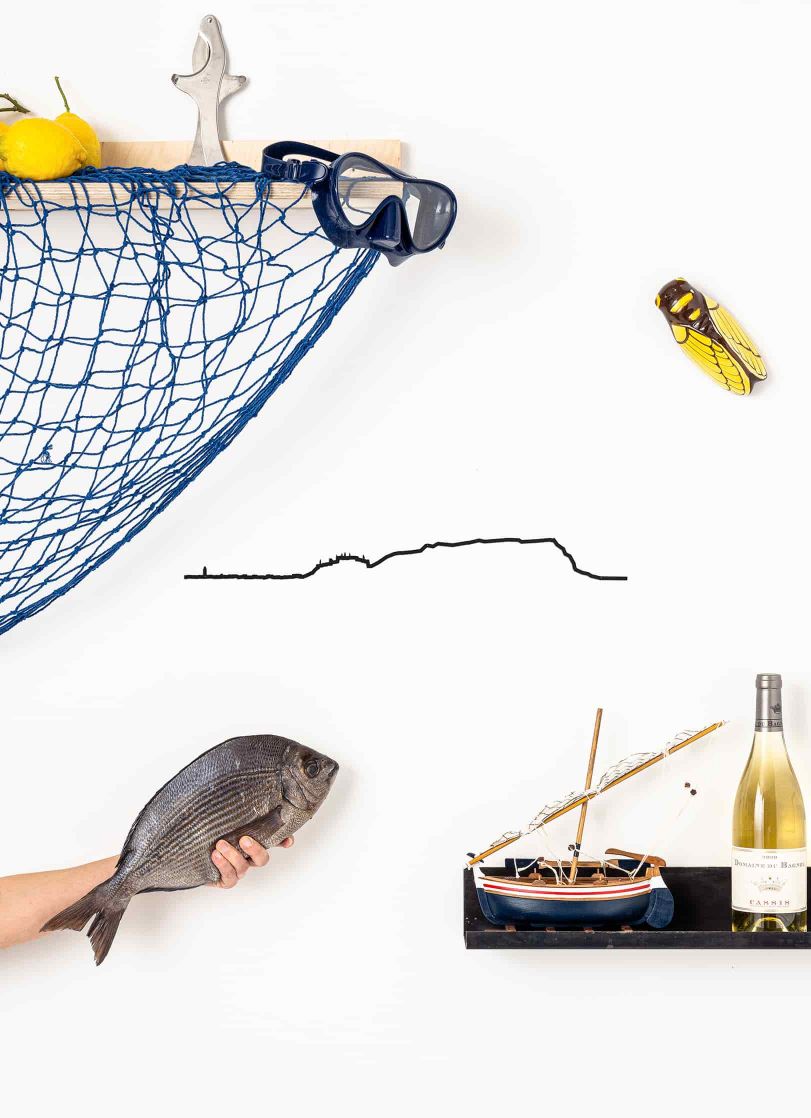 On y voit le port, le Château et bien évidemment le Cap Canaille.L'histoireThe Line commence par une photo prise un matin de 2015 à Marseille. Il est tôt, le soleil se lève derrière la colline de Notre Dame de la Garde et découpe sa silhouette en ombre chinoise. L'essentiel de Marseille est là ; la colline, la Bonne Mère, la Trouée de Vauban.Antoine décide d'en faire un objet découpé dans l'acier. L'idée a très vite beaucoup de succès à Marseille et il développe son idée : aujourd'hui, TheLine propose la silhouette de plus de quarante villes à travers le monde et s'est imposé comme une référence en matière d'objet souvenir.La marqueThe Line est une jeune marque française qui depuis 2015 retranscrit les silhouettes de villes en un trait. C’est une alternative aux objets souvenirs premier degré ; une façon élégante de représenter les lieux qui nous sont chers. Les lieux racontent beaucoup de nous, de notre appartenance, de nos rencontres, de nos voyages. Ils sont en nous et
