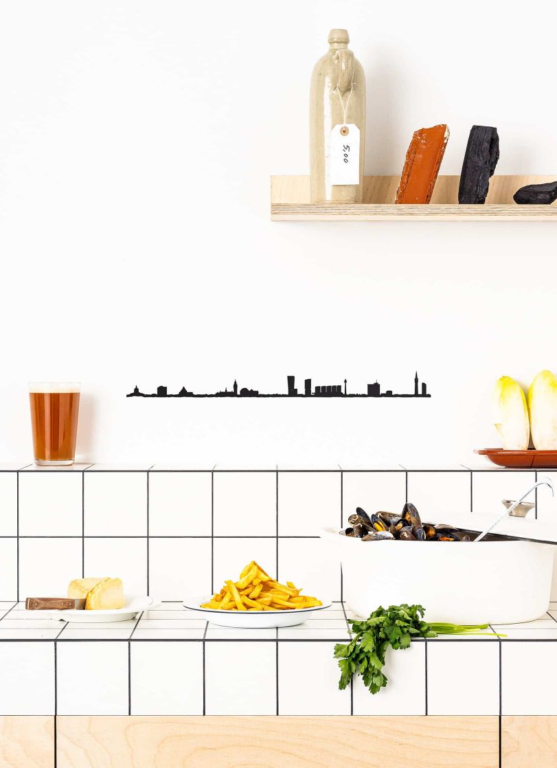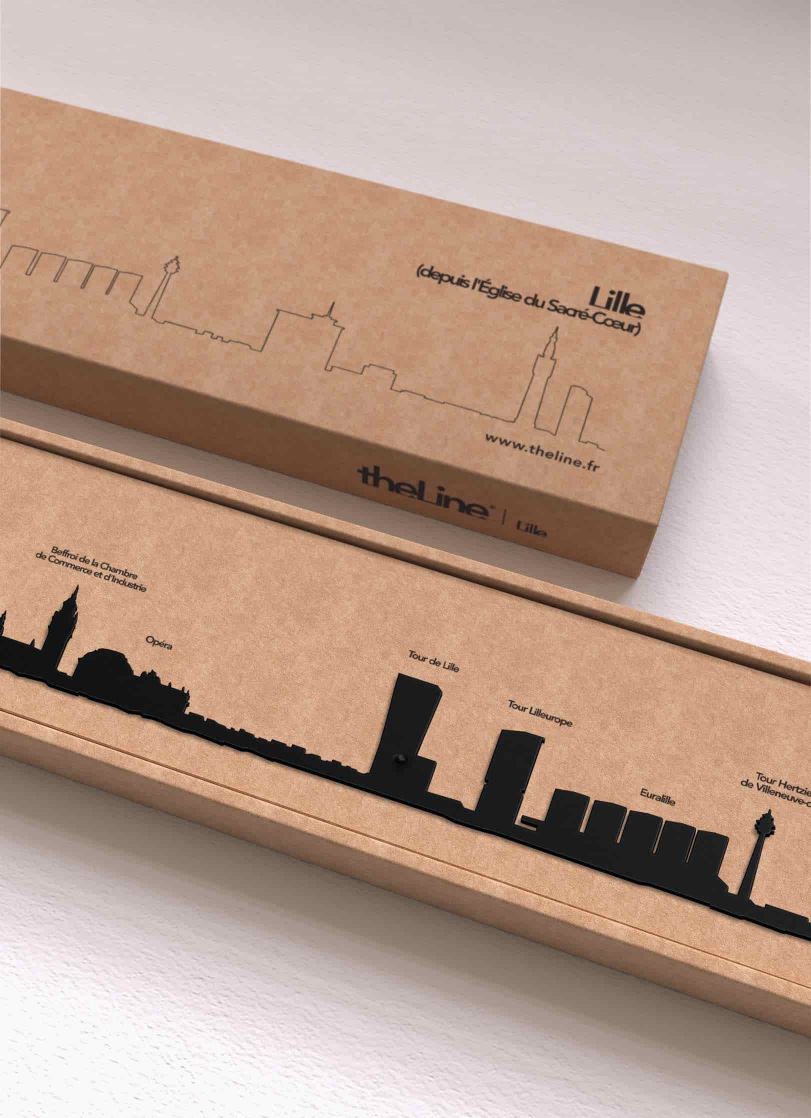 On y voit la Cathédrale Notre-Dame-de-la-Treille, la tour de Lille, l'Opéra et bien évidemment le Beffroi.L'histoireThe Line commence par une photo prise un matin de 2015 à Marseille. Il est tôt, le soleil se lève derrière la colline de Notre Dame de la Garde et découpe sa silhouette en ombre chinoise. L'essentiel de Marseille est là ; la colline, la Bonne Mère, la Trouée de Vauban.Antoine décide d'en faire un objet découpé dans l'acier. L'idée a très vite beaucoup de succès à Marseille et il développe son idée : aujourd'hui, TheLine propose la silhouette de plus de quarante villes à travers le monde et s'est imposé comme une référence en matière d'objet souvenir.La marqueThe Line est une jeune marque française qui depuis 2015 retranscrit les silhouettes de villes en un trait. C’est une alternative aux objets souvenirs premier degré ; une façon élégante de représenter les lieux qui nous sont chers. Les lieux racontent beaucoup de nous, de notre appartenance, de nos rencontres, de nos voyages. Ils sont en nous et