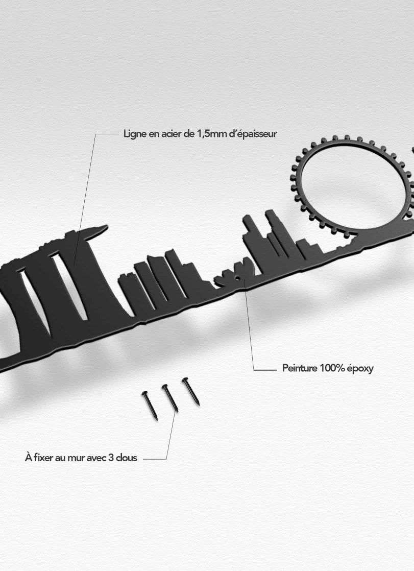 Antoine décide d'en faire un objet découpé dans l'acier. L'idée a très vite beaucoup de succès à Marseille et il développe son idée : aujourd'hui, TheLine propose la silhouette de plus de quarante villes à travers le monde et s'est imposé comme une référence en matière d'objet souvenir. La marqueThe Line est une jeune marque française qui depuis 2015 retranscrit les silhouettes de villes en un trait. C’est une alternative aux objets souvenirs premier degré ; une façon élégante de représenter les lieux qui nous sont chers. Les lieux racontent beaucoup de nous, de notre appartenance, de nos rencontres, de nos voyages. Ils sont en nous et nous accompagnent toute la vie.Il en est de même pour la musique : c’est un incroyable vecteur d’émotion. Elle a aussi une résonance universelle qui dépasse les frontières et les cultures. Certains morceaux ont marqué l’histoire, lié des peuples et ému des foules. The Line a choisi de les représenter en un trait, en utilisant leur fréquence sonore et laisse ainsi apparaître en un coup d’œil, les temps forts, les pauses et les changements de rythme. C’est une nouvelle façon d’appréhender la musique, en la regardant, en la touchant. Chaque produit a été approuvé par les éditeurs, les artistes ou les ayants-droits.