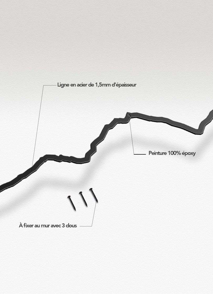 Antoine décide d'en faire un objet découpé dans l'acier. L'idée a très vite beaucoup de succès à Marseille et il développe son idée : aujourd'hui, TheLine propose la silhouette de plus de quarante villes à travers le monde et s'est imposé comme une référence en matière d'objet souvenir. La marqueThe Line est une jeune marque française qui depuis 2015 retranscrit les silhouettes de villes en un trait. C’est une alternative aux objets souvenirs premier degré ; une façon élégante de représenter les lieux qui nous sont chers. Les lieux racontent beaucoup de nous, de notre appartenance, de nos rencontres, de nos voyages. Ils sont en nous et nous accompagnent toute la vie.Il en est de même pour la musique : c’est un incroyable vecteur d’émotion. Elle a aussi une résonance universelle qui dépasse les frontières et les cultures. Certains morceaux ont marqué l’histoire, lié des peuples et ému des foules. The Line a choisi de les représenter en un trait, en utilisant leur fréquence sonore et laisse ainsi apparaître en un coup d’œil, les temps forts, les pauses et les changements de rythme. C’est une nouvelle façon d’appréhender la musique, en la regardant, en la touchant. Chaque produit a été approuvé par les éditeurs, les artistes ou les ayants-droits.