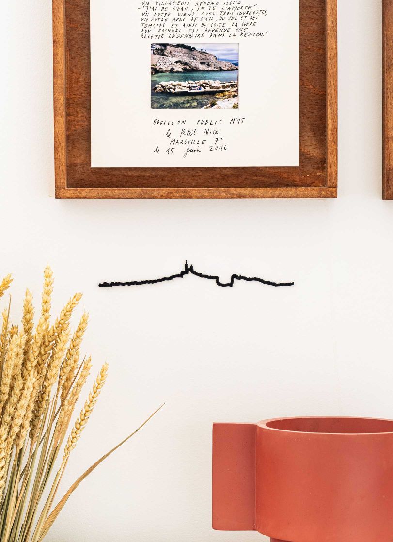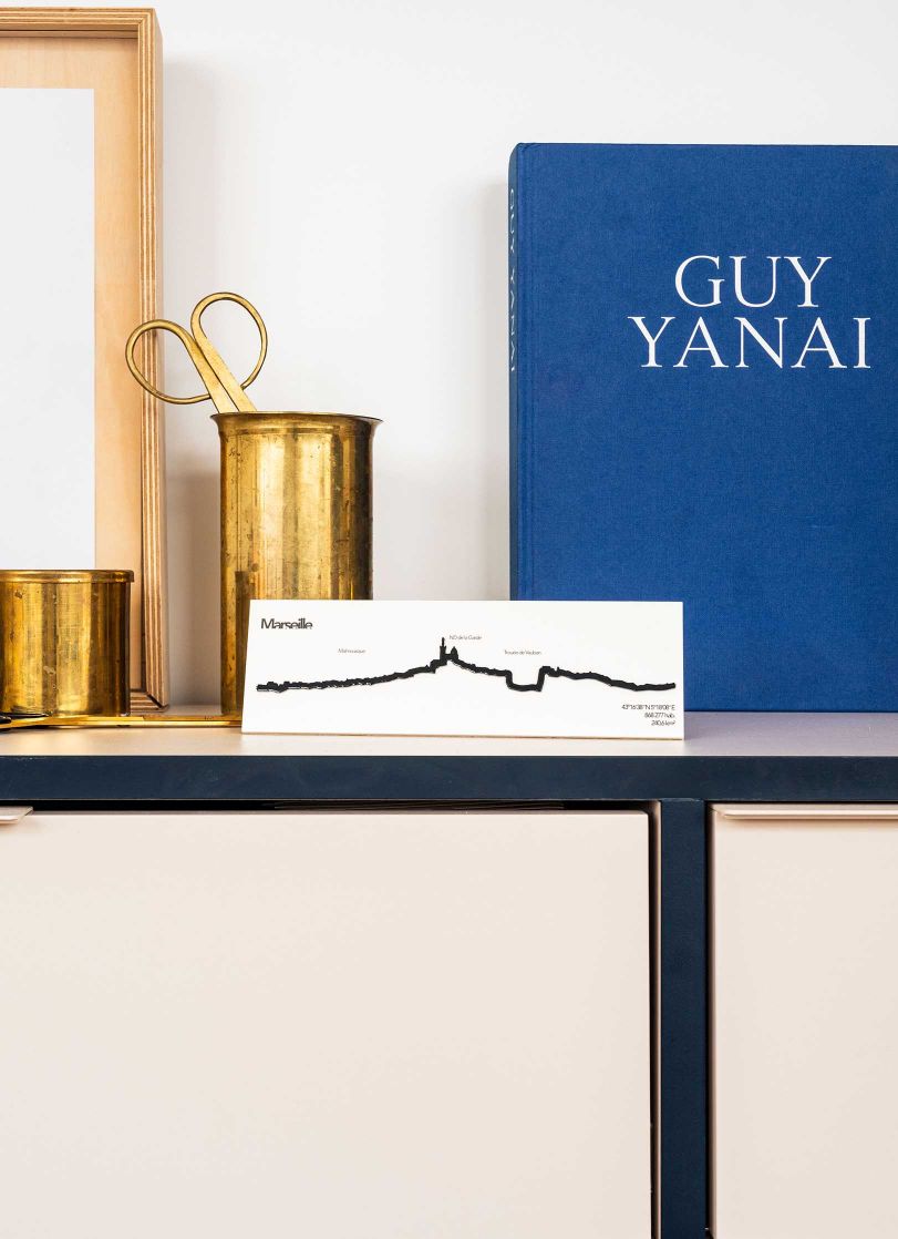Vous pouvez également retrouver quelques chiffres clés sur la ville tout comme les coordonnées GPS à partir desquelles nous avons dessiné la ligne, le nombre d’habitants et la superficie de la ville. L'histoireThe Line commence par une photo prise un matin de 2015 à Marseille. Il est tôt, le soleil se lève derrière la colline de Notre Dame de la Garde et découpe sa silhouette en ombre chinoise. L'essentiel de Marseille est là ; la colline, la Bonne Mère, la Trouée de Vauban.Antoine décide d'en faire un objet découpé dans l'acier. L'idée a très vite beaucoup de succès à Marseille et il développe son idée : aujourd'hui, TheLine propose la silhouette de plus de quarante villes à travers le monde et s'est imposé comme une référence en matière d'objet souvenir.La marqueThe Line est une jeune marque française qui depuis 2015 retranscrit les silhouettes de villes en un trait. C’est une alternative aux objets souvenirs premier degré ; une façon élégante de représenter les lieux qui nous sont chers. Les lieux racontent beaucoup de nous, de notre appartenance, de nos rencontres, de nos voyages. Ils sont en nous et nous accompagnent toute la vie.
