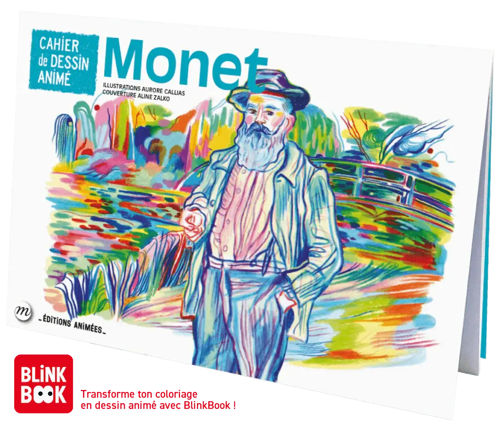 Découvrez le Cahier Éditions Animées Monet. BlinkBook éditions animées, propose des livres à lire et colorier qui se transforme en dessin animé, à la croisée du livre et du numérique. Célèbre artiste de la seconde moitié du XIXe siècle et du début du XXe siècle, Claude Monet aime peindre la couleur de l’air et les changements de lumière. Comme les peintres impressionnistes, il pose son chevalet en « plein air » et réalise la plupart de ses œuvres en extérieur.