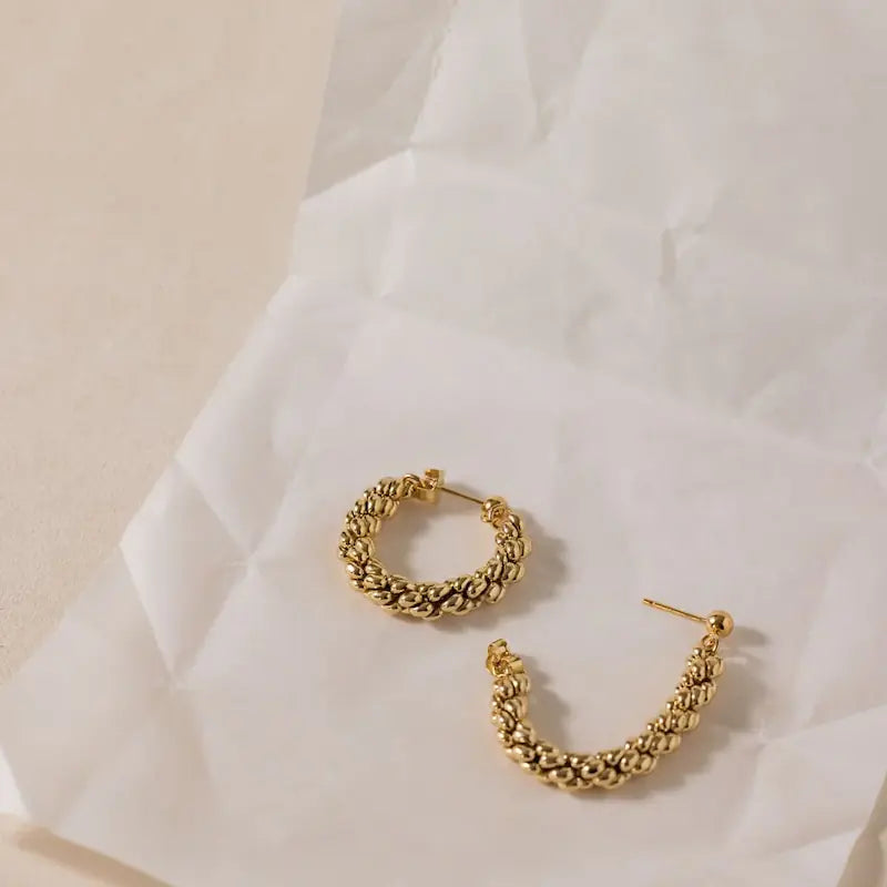 Les boucles d'oreilles ENNATO Esther respire un charme vintage irrésistible. En effet, sa simplicité apparente attire immédiatement l'œil. Cependant c'est en observant de plus près ses maillons délicatement arrondis, qu'on est véritablement ébloui par ses torsades élégantes. Pour Anne Thomas, les boucles Esther évoquent les chatons du charme qu'elle cueille au printemps avec ses enfants pour enrichir leur herbier. Une touche de nature élégante ! Pour celles qui aiment collectionner, les boucles Esther est également disponible en collier, bague et bracelet.