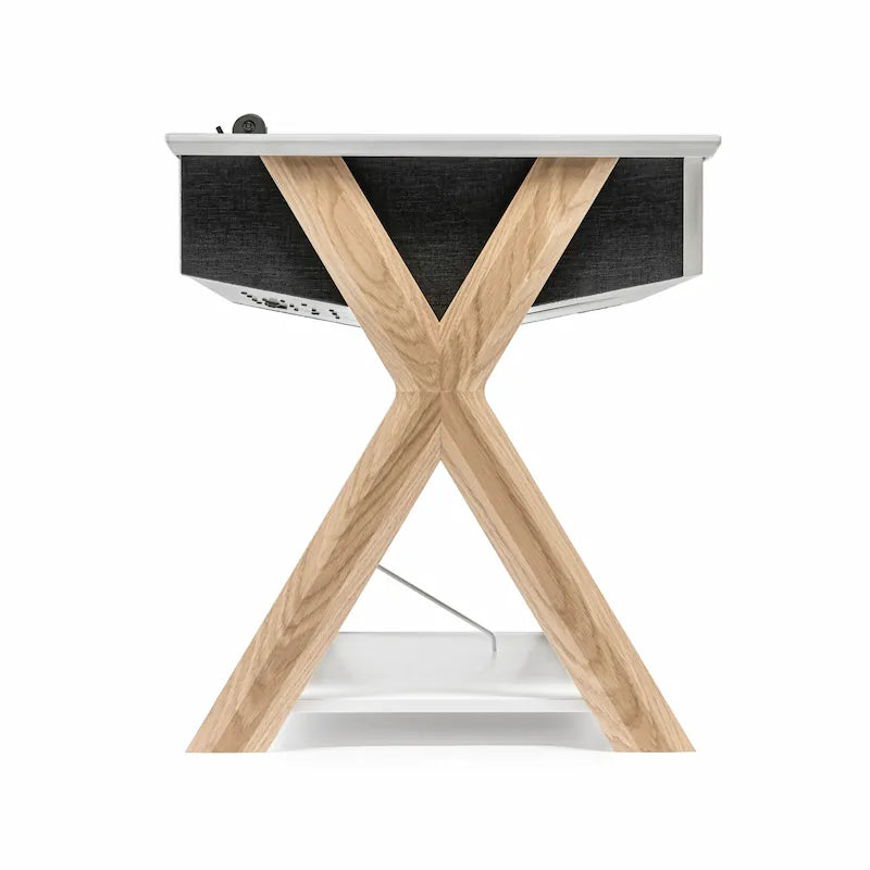 Découvrez l'enceinte LX X Platine, fruit de la collaboration entre La Boite concept et Samuel Accoceberry, qui partagent une même exigence : mettre en valeur le savoir-faire artisanal du mobilier. Le travail du bois réalisé sur le pied iconique en forme de X de cette nouvelle gamme a été rendu possible grâce à l'excellence des partenaires locaux de longue date, ainsi qu'au talent du designer. Les finitions du panneau de commande, des boutons de contrôle, du gainage textile latéral et des sorties acoustiques ont été réalisées avec les mêmes critères de qualité. Chaque élément technique de l'enceinte a été soigneusement intégré au design du meuble pour créer une véritable pièce de mobilier contemporain, où chaque détail compte. Le mariage parfait entre esthétisme et technologie vous offre une expérience audio inégalée.
