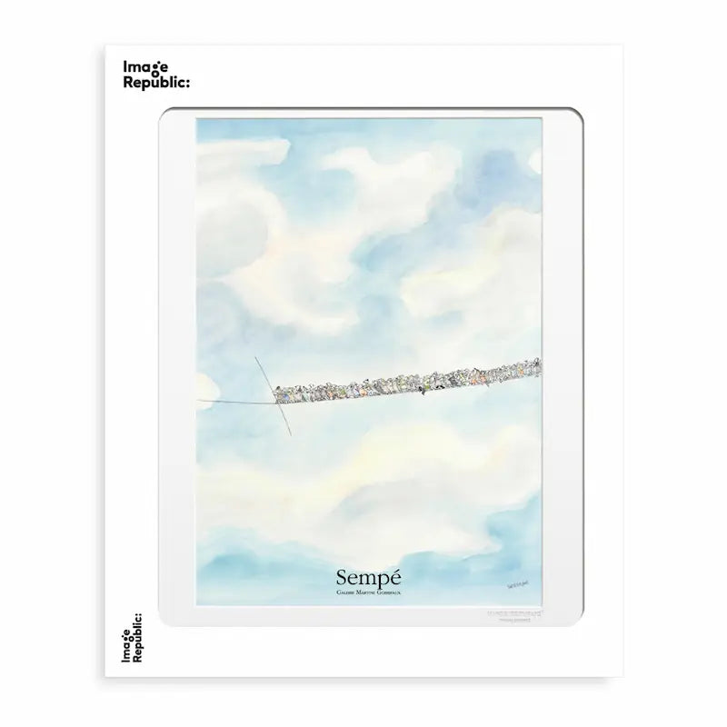 Illustration Sempé « Funambule » Image Republic, 30x40cmImage Republic édite depuis plus de 10 ans les dessins et illustrations de Jean-Jacques Sempé. Son œuvre est universelle et pour tous, synonyme d’élégance, de poésie, d’humour... Dès son adolescence à Bordeaux, Sempé rêvait de pouvoir intégrer la famille des dessinateurs du New Yorker, le prestigieux magazine américain dont il admirait l’esprit. Ce rêve devenu possible, en 1978, il se rend régulièrement à New York pour travailler avec une équipe qui lui laisse une totale liberté. Sempé dessine cent-une couvertures et autant de “cartoons” en pages intérieures, ce qui est sans précédent dans l’histoire d’un magazine américain.Jean-Jacques SempéSempé né le 17 Août 1932. Après une enfance plus que difficile, Jean-Jacques Sempé s'enferme dans ses rêveries et se met à dessiner. Adolescent, Sempé est un élève rebelle et indiscipliné. Si bien qu'il fini par être renvoyé de son collège. Il commence à travailler à 17 ans. Après avoir été l’assistant malchanceux d’un courtier en vins et s’être engagé dans l’armée, il se lance à 19 ans dans le dessin humoristique. Il quitte Bordeaux et vit difficilement à Paris en plaçant quelques dessins dans les journaux. Essentiellement dessinateur de presse, Sempé ne semblait pas vouloir faire carrière dans la BD. Il rencontre René Goscinny et en 1959. L’extraordinaire complicité du duo de jeunes auteurs formé par Goscinny et Sempé, révèle un véritable univers. La première aventure du Petit Nicolas paraît le 29 mars 1959 dans Sud Ouest-Dimanche. Pendant sept années, Goscinny et Sempé font vivre Nicolas chaque semaine, et composent 222 histoires. A travers Nicolas et ses copains, ils font vivre leurs propres souvenirs.En 1962, les Editions Denoël, envers laquelle il vouera une reconnaissance éternelle, publie son premier album de dessins humoristiques. Depuis, il travaille pour des journaux et réalise régulièrement depuis 1979 des couvertures pour The New Yorker. Jean-Jacques Sempé a publié aux Editions Denoël 26 albums de dessins humoristiques. 'Le Petit Nicolas' ainsi que ses albums sont traduits dans le monde entier. Il décède le 11 août 2022.