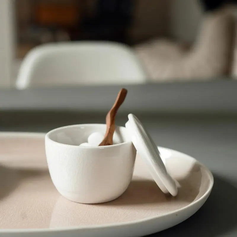 Découvrez le sucrier Maguelone Jars, une pièce unique au design organique et poétique. Laissez-vous séduire par l'éclat raffiné des émaux craquelés et le charme poétique d'une île méditerranéenne, bercée par la douceur du vent dans les pins. Le sucrier Maguelone en céramique, avec ses lignes irrégulières et sa forme organique, est une pièce unique marquée par la main de l'artisan. Son émail quartz, brillant et finement craquelé, offre une touche intemporelle et élégante. Grâce à une cuisson Grand Feu à 1280°C, elle garantit une haute résistance et une durabilité exceptionnelle. En grès émaillé non poreux, elle est conçue pour résister aux chocs et ne s’ébrèche pas. Ses composants naturels et durables sont respectueux de l’environnement.