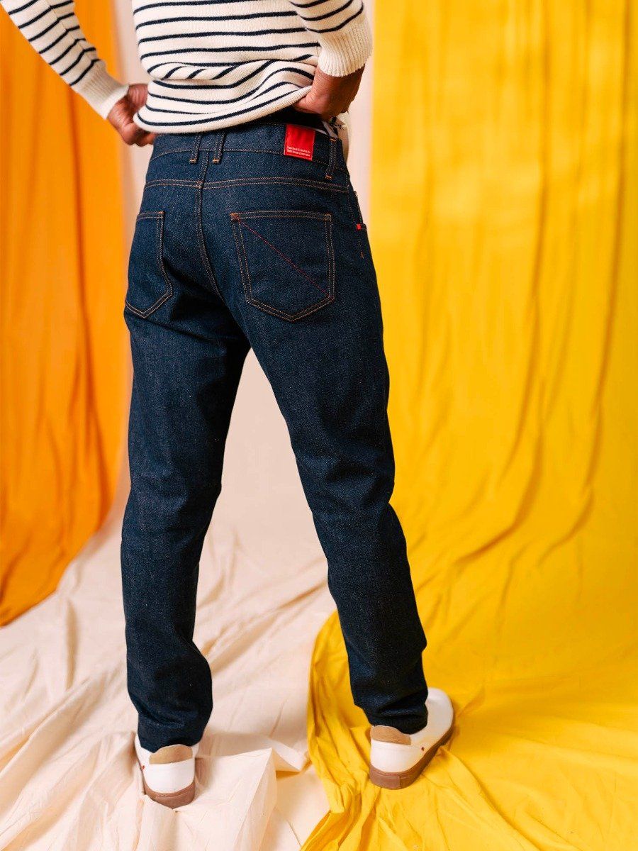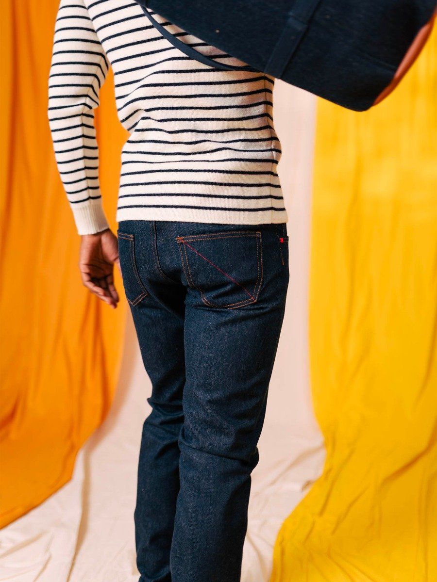 - Précautions : La teinture indigo "dégorge" naturellement. Il est impératif de le laver avant le premier porté pour protéger vos vêtements clairs et vos sneakers blanches.