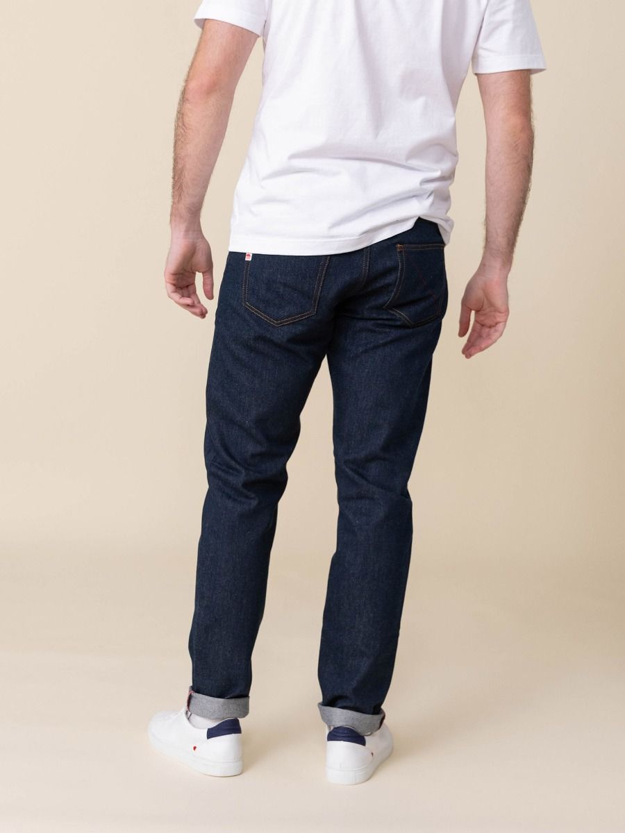Le 103N est le jean parfait pour ceux qui recherchent une silhouette moderne sans sacrifier la liberté de mouvement. Sa coupe ajustée (ou semi-slim) offre un look dynamique qui s'adapte aussi bien à un environnement professionnel qu'à vos moments de détente. Confectionné dans notre SuperDenim 100 % coton bio, il s'inspire de l'iconique selvedge pour vous offrir une robustesse exceptionnelle. Un bleu profond, une tenue irréprochable et une fabrication 100 % française : c'est le nouveau basique de votre vestiaire.