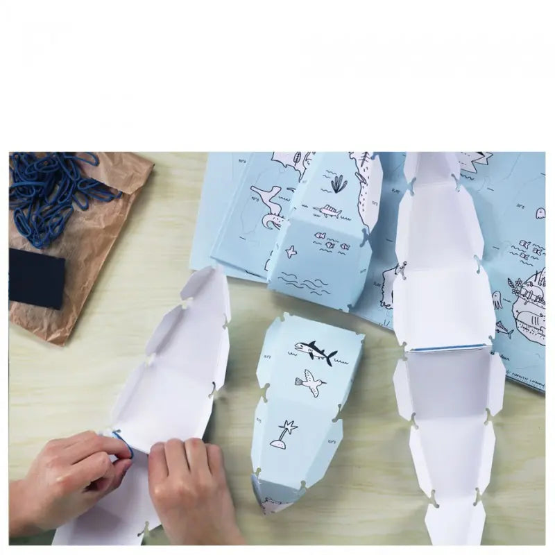 Sans colle ni ciseaux, ce jeu créatif utilise le système ingénieux Elastiblock® : les fuseaux en papier s’assemblent facilement grâce à de petits élastiques. Une fois monté, il ne reste plus qu’à sortir les feutres et donner vie à la planète.