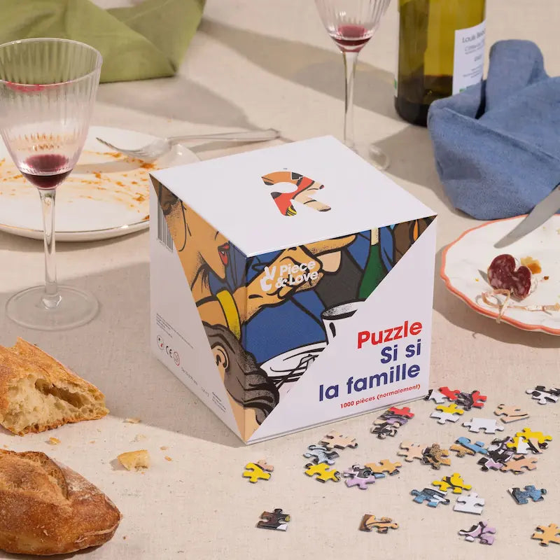 Puzzle 1000 pièces Sisi la famille Piece & Love. Une affiche du design est incluse afin de guider l’expérience. Les plus audacieux pourront se lancer à l’aveugle pour relever le défi 🔥