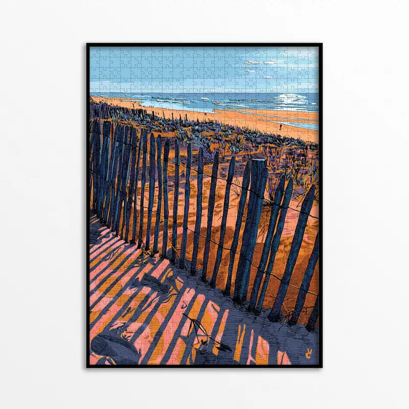Découvrez le Puzzle 1000 pièces Walk don't run Piece & Love. Entièrement made in France, plongez dans l'univers artistique de Suzie -Q. Après avoir créé les Louisettes en 2005, une société pionnière dans la mode du sticker, Julie Schalit alias Suzie-Q se consacre au dessin en illustrant des sujets variés (www.suzie-q.fr). Elle nous plonge dans un univers rétro, haut en couleur et nous fait voyager ici dans les Landes (cette fois-ci par le puzzle), à coup de feutres maîtrisés et vibrants. Les puzzles sont l'activité parfaite à faire en famille ou entre amis. Prêts pour relever le challenge ? La collection de puzzles 1000 pièces Piece & Love est le fruit d'une collaboration avec des illustrateurs merveilleux. Ils ont chacun leur univers et leur patte ! Une fois le puzzle terminé, il fera un excellent objet de décoration à encadrer, accrocher ou poser.