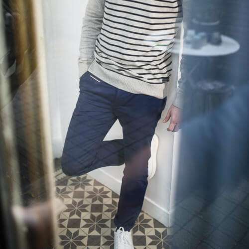 Le Chino La Gentle Factory Carlos indigo apporte une allure chic décontractée. Idéal en journée, il sait se montrer plus habillé le soir accompagné de mocassins et d'une chemise. Ce chino est fabriqué en France, à partir de coton biologique. Votre empreinte carbone est donc limité, vous contribué à un monde meilleur pour la planète ! N'hésitez pas à l'associer au tee-shirt Baptiste et au sweat en molleton Basilepour un look casual.