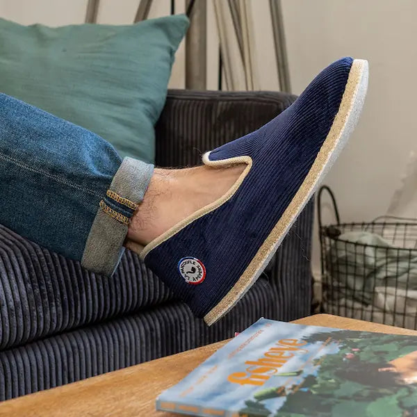 Les chaussons charentaises Pépère Rétro Bleu de La Pantoufle à Pépère sont confectionnées avec amour selon la technique du cousu-retourné, emblématique de la charentaise traditionnelle. Chaque paire est minutieusement façonnée à la main, ce qui garanti une qualité et un confort inégalé. Les chaussons charentaises Pépère se couvrent de velours côtelé bleu royal qui confère une élégance classique et un style impeccable.