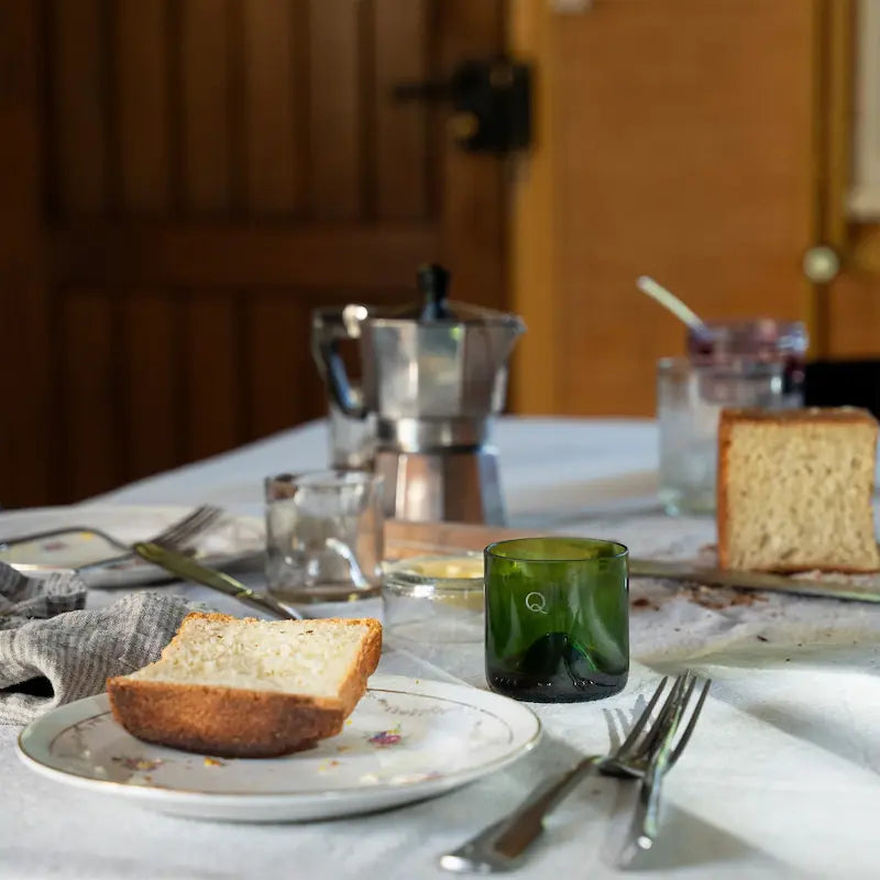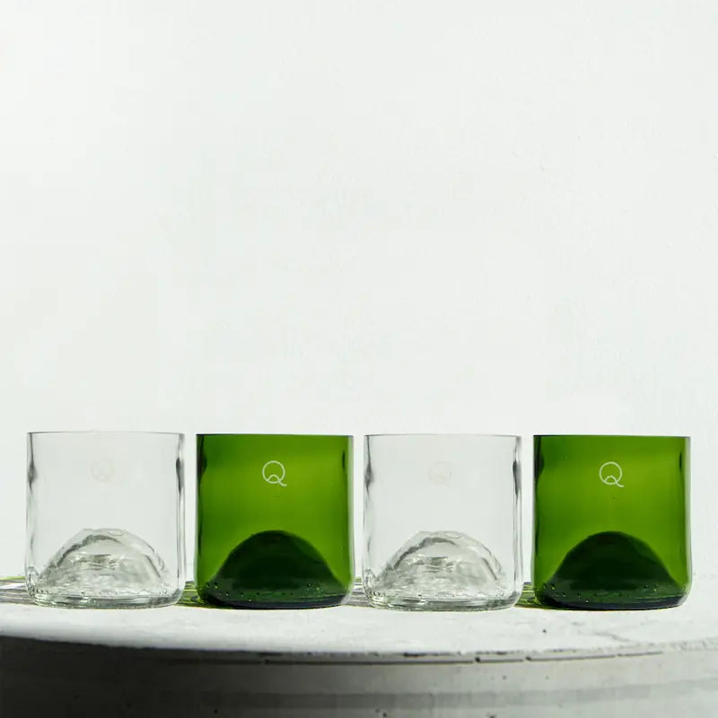 Q de Bouteilles, c’est d’abord l’idée de couper une bouteille de vin en deux pour en faire un verre née d’une soirée entre copains. C’est pourquoi Victoire et Gauthier fondent l’avenir de l’entreprise sur les mêmes valeurs que leur couple: l’affectif, le respect, la simplicité et l’harmonie. L’upcycling est à la base de l’histoire chez QDB. Le travail du verre s’effectue dans le respect de son histoire et de sa fonction.