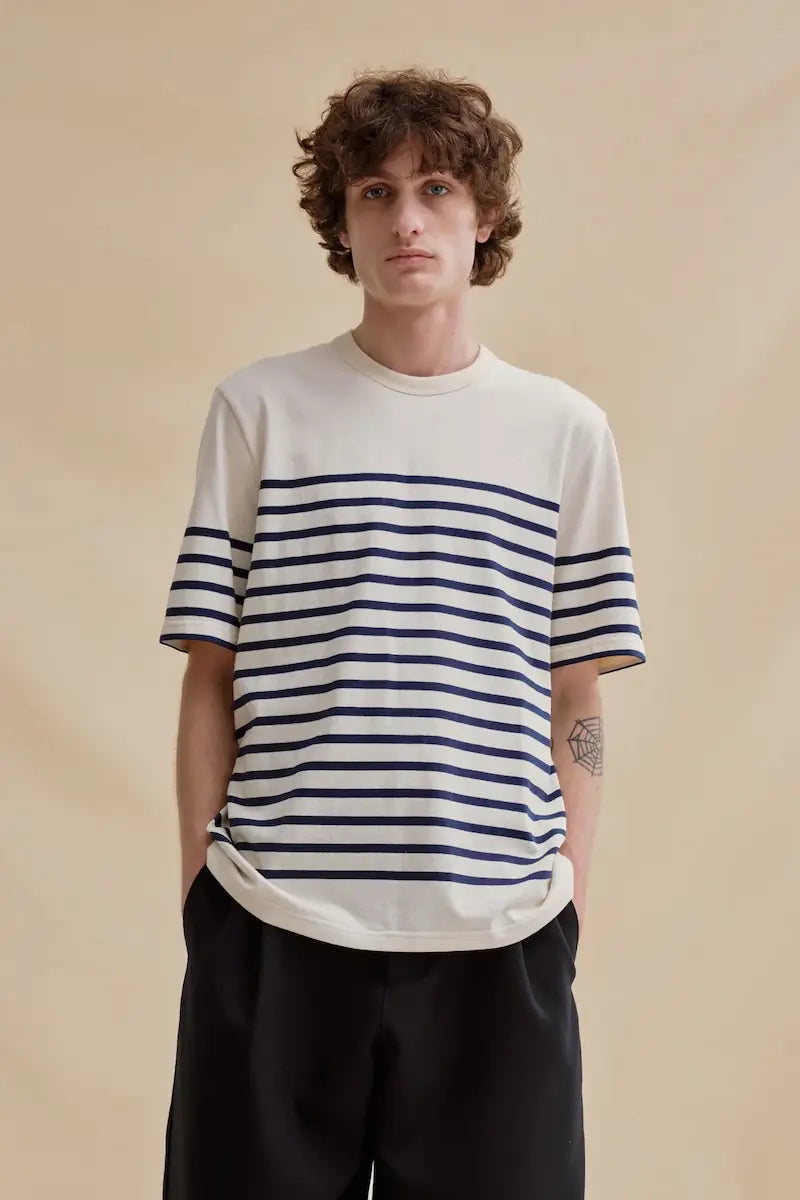 Découvrez le T-shirt marine nationale Le Minor écru/marine, une réinterprétation Le Minor. Composé en 100% coton brut, il vous assure un porter confortable et léger. De plus, sa coupe ample et contemporaine permet une grande liberté de mouvement, parfait pour un style décontracté et urbain. Fabriqué en coton brut de haute qualité, ce t-shirt garantit un confort optimal grâce à son toucher doux et agréable sur la peau.