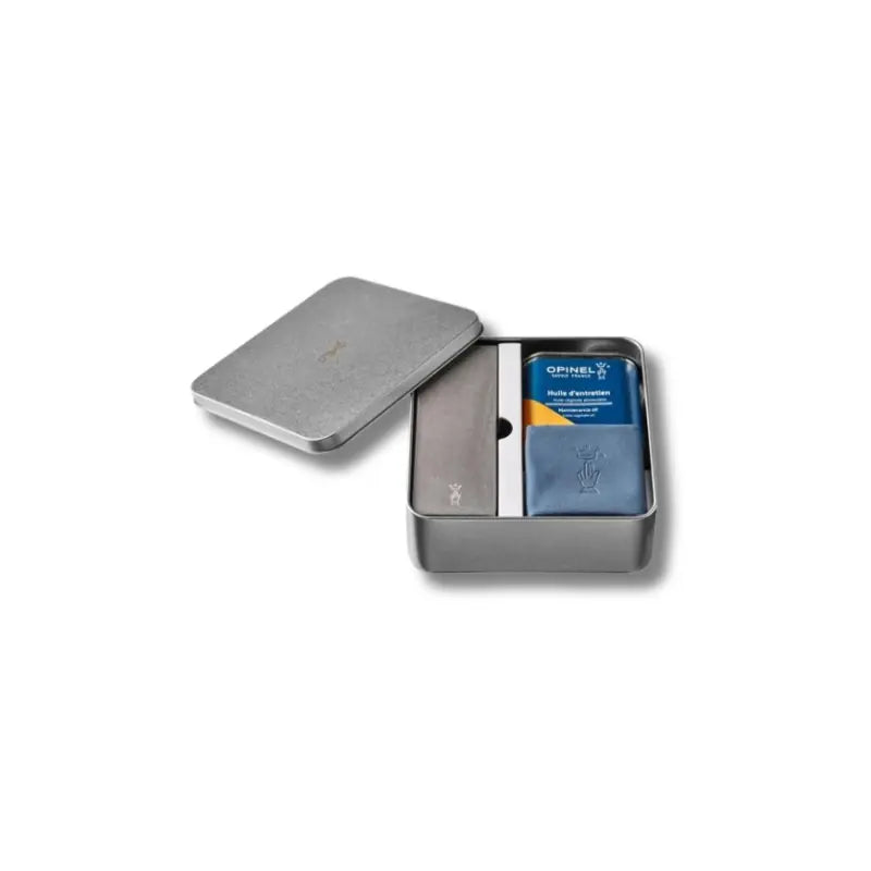 Découvrez le Kit entretien Opinel. Celui-ci regroupe des accessoires utiles qui permettront de maintenir vos couteaux en bon état. Ainsi, l'intérieur de sa boite métallique de rangement se constitue :