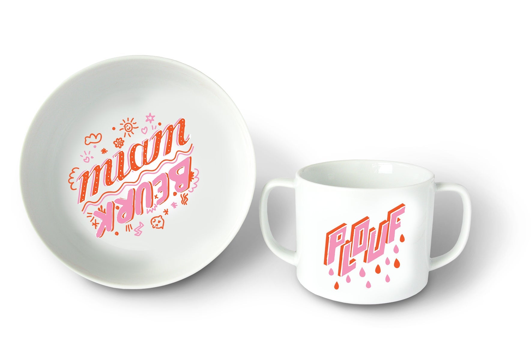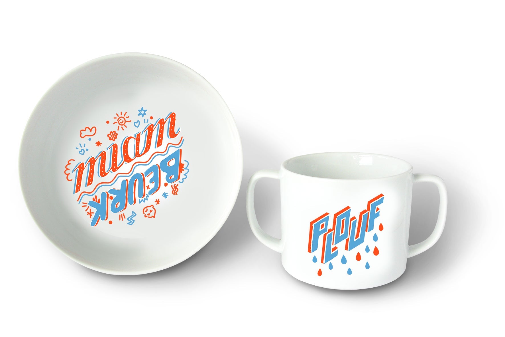 Duo de vaisselle pour bébé Pied de Poule. Un set de vaisselle porcelaine made in France pour faire tout goûter à vos enfants, le meilleur comme le pire !