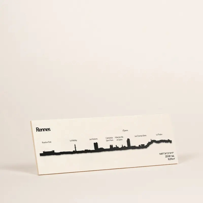 Découvrez la Silhouette The Line Mini Rennes depuis le quartier de Bréquigny avec la Roazhon Park, les Champs Libres, le moderne Mabilay, le Parlement de Bretagne et la cathédrale Saint-Pierre. Fabriqué en France, The Line Mini, c’est un format de poche et une boîte plate, facile à glisser dans un sac ou dans une poche et à ramener de voyage, en avion ou à dos de chameau ! Le cadeau idéal à coller, à aimanter ou à poser. Utilisez votre Mini Line selon vos envies comme un magnet, un souvenir ou un objet de décoration murale. Plus d’excuses pour rapporter un souvenir de sa ville préférée !