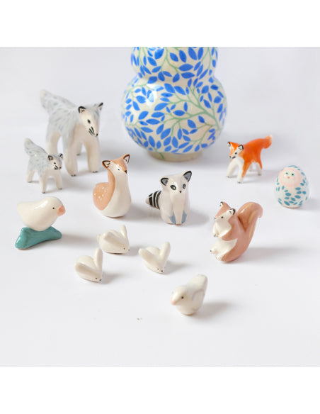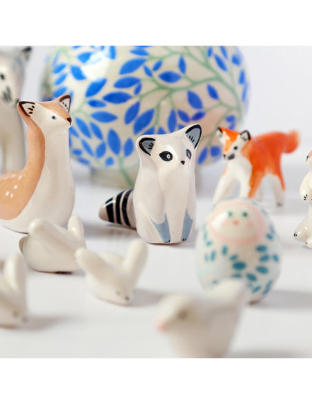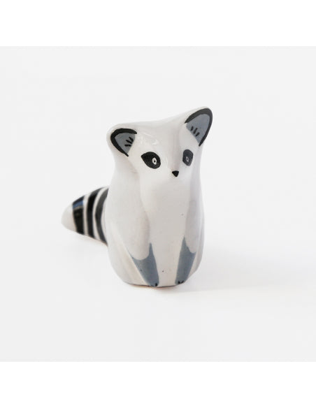 Raton laveur en faïence, modelé et peint à la main, chaque raton laveur est unique.