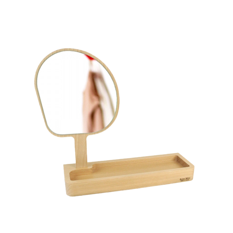 Miroir et vide-poche en hêtre massif issu de FGD*, miroir en verre sans cuivre, fabriqué à Toulouse, dans l'Yonne et dans le Jura.