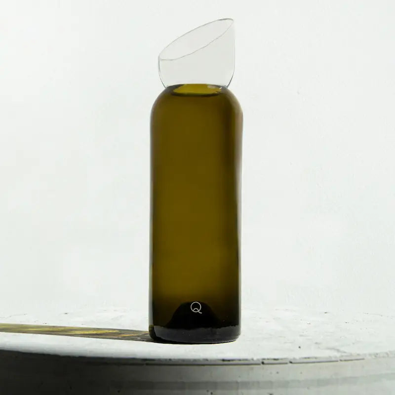 Carafe "Danser/Séduire" QDB. Q de Bouteilles upcycle et recycle des bouteilles de vins afin de s'inscrire dans un cercle vertueux de recyclage. Ainsi, une nouvelle vie, une nouvelle fonction est attribuée, pour un nouvel art de vivre minimaliste et épuré.