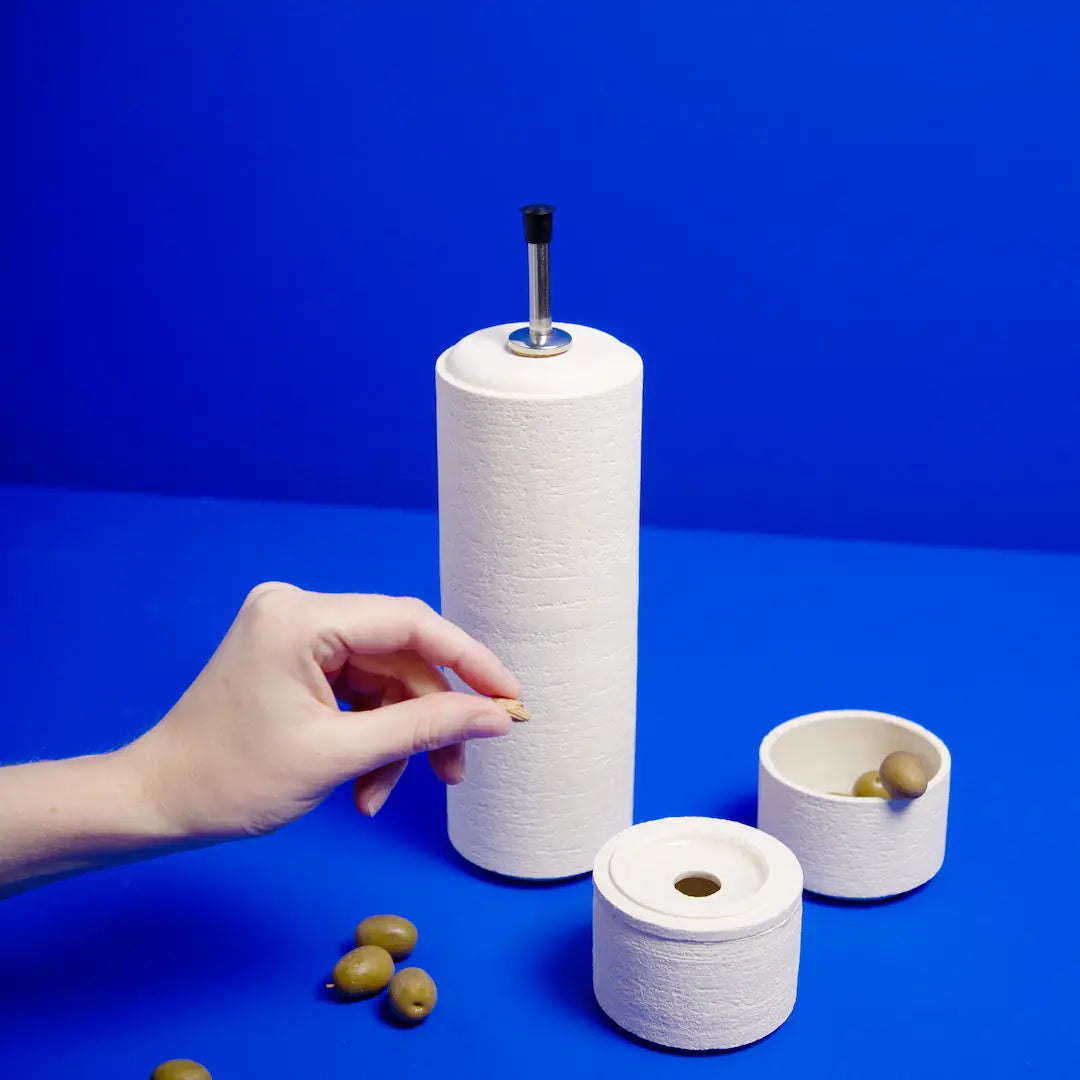 Huilier TOTO Céramique x CQFD. Un huilier minimaliste et organique, entièrement réalisé à la main, par TOTO, céramiste avignonnais, pour nos 10 ans CQFD.