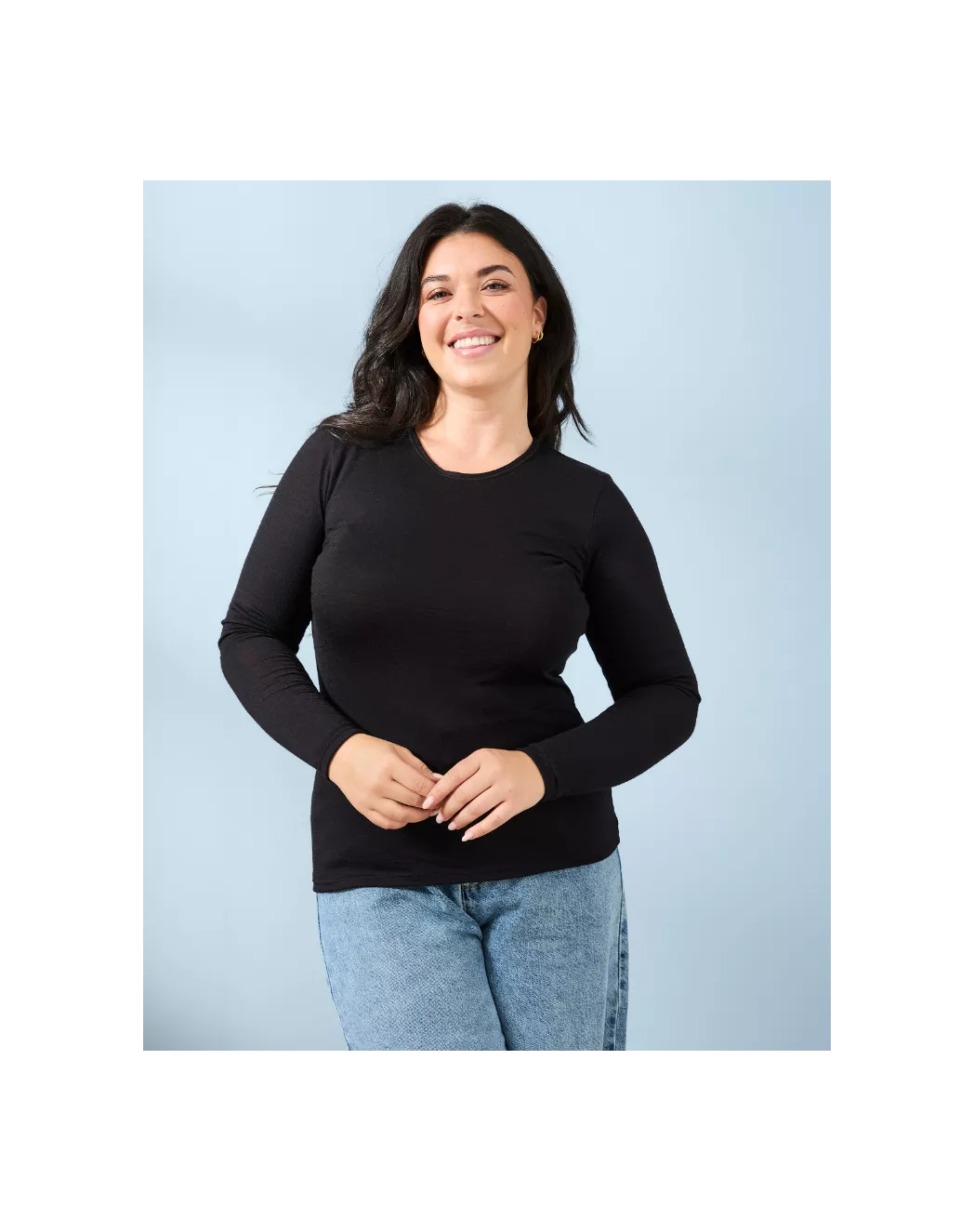 Chez CQFD Avignon, nous aimons les vêtements qui ne trichent pas. Le t-shirt manches longues Ellen en coloris noir en est la preuve. Conçu comme une véritable seconde peau thermique, il utilise les propriétés magiques de la laine mérinos pour vous offrir un confort thermique inégalé, que vous soyez active en extérieur ou en mode cocooning à la maison.