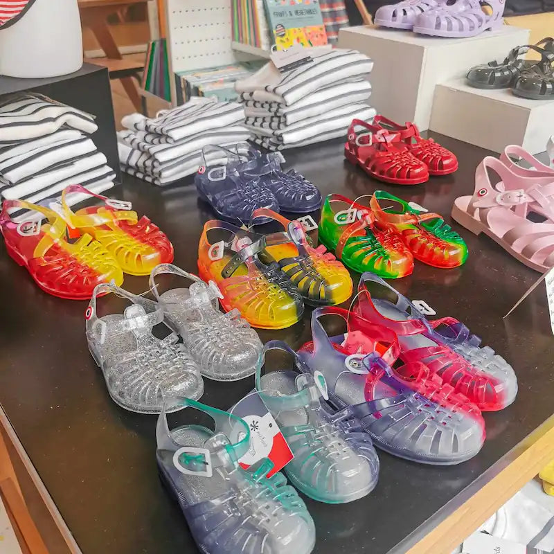 Craquez pour les sandales Suntri Méduse® France. Les journées ensoleillées n’attendent plus que... les sandales Suntri ☀️ Vos pieds vont adorer votre partenaire officiel des escapades sous le soleil. Dotées de couleurs fun, elles sont aussi 100% made in France (vous sentez ce petit air de fierté ? 🇫🇷). Que ce soit pour la plage, le parc, ou la chasse aux papillons, les sandales Suntri assurent une saison estivale sans fausse note ! Pour finir, 100% recyclable, elles offrent une durée de vie impressionnante de 15 ans! Conçues en PVC sans phtalates, elles respectent la charte INNOSHOE® pour un confort optimal.